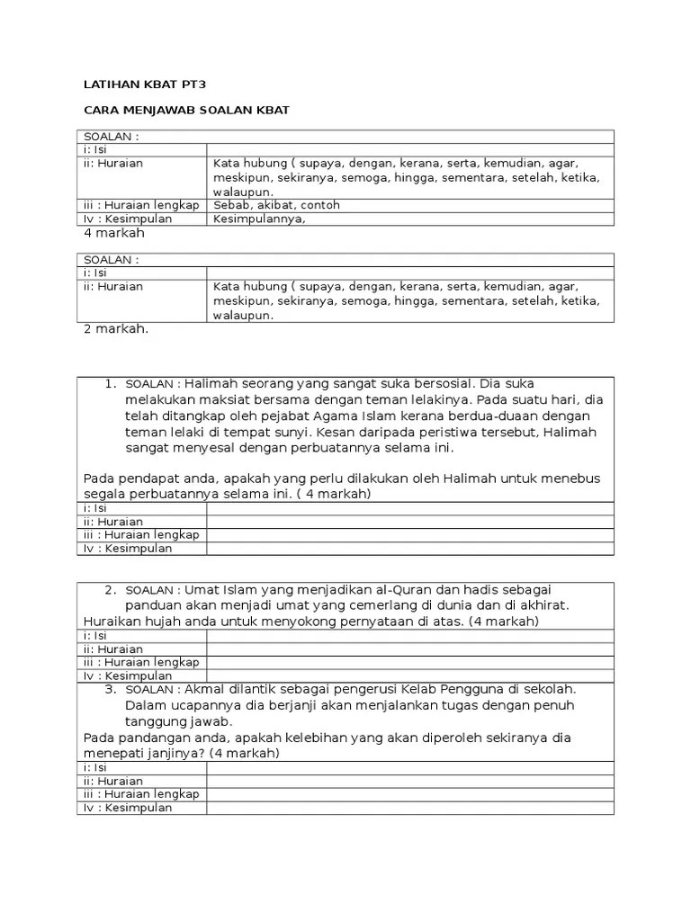 Teknik menjawab spm bagi soalan kbkk & kbat pendidikan islam soalan respon terbuka bukan kbat. Soalan peperiksaan, soalan percubaan, nota, latihan, modul soalan, jawapan… rujukan spm (tingkatan 4, 5) : Baca versi flipbook dari conquer! 100 koleksi soalan kbat tingkatan 1, 2 dan 3 pendidikan via mehrajbooks.com.my. Mengenal arahan dan kehendak soalan kbat3.